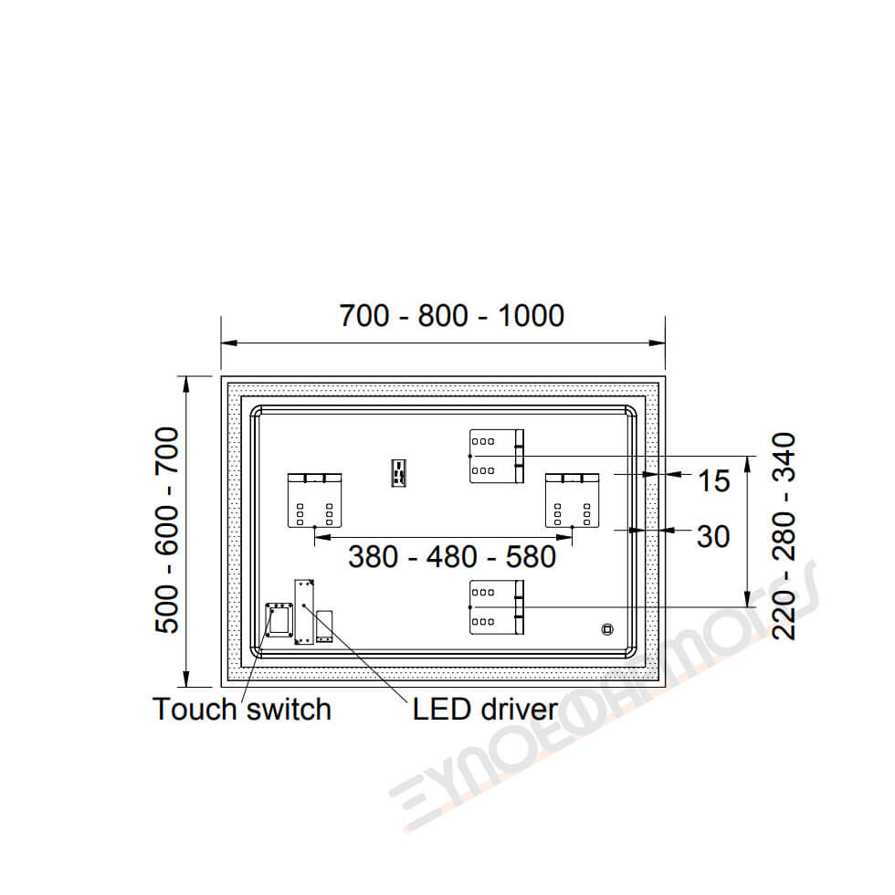 Περιγραφή: Καθρέπτης 50×70 εκ. φωτιζόμενος LED. Μπορεί να τοποθετηθεί κάθετα ή οριζόντια