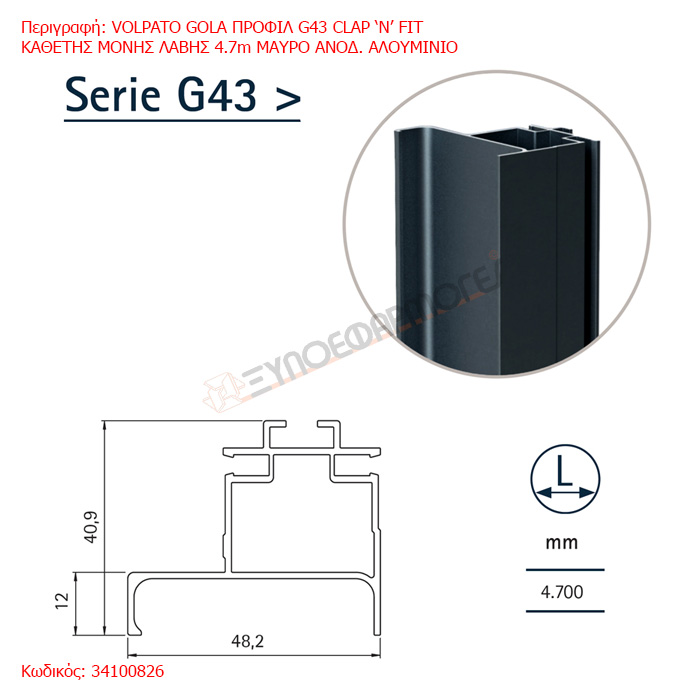 GoLa κάθετο μονό προφίλ μαύρο 4,70μ